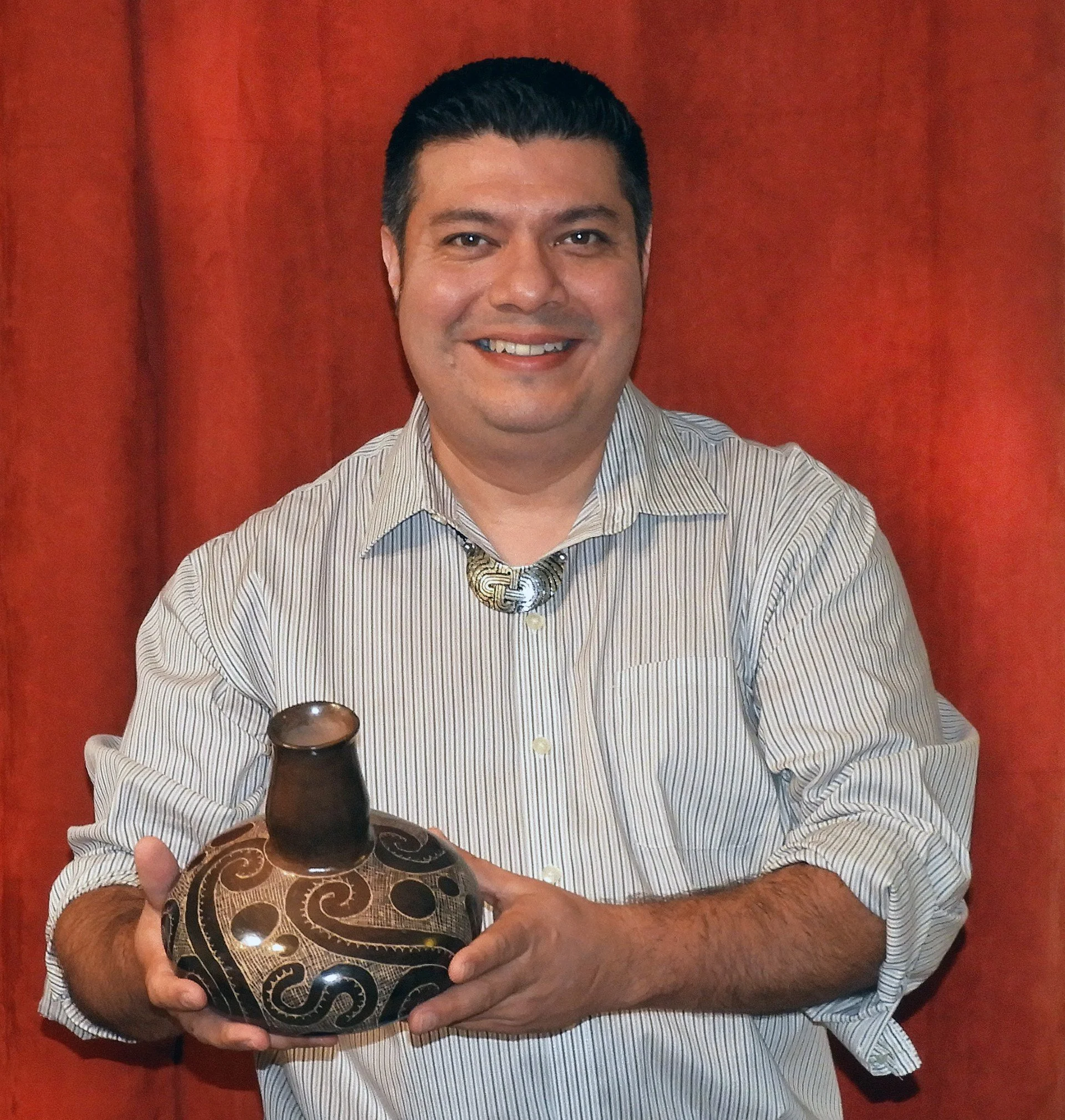 A member of the Caddo Nation, Chase Kahwinhut Earles creates pottery in the traditional Caddo style and methods, with his own unique adaptations and themes taken from traditional as well as modern culture. The Caddo pottery traditions were in danger of disappearing when Earles began studying with the only living Caddo pottery revivalist at the time, and also teaching himself all he could learn through research. Now, Earles is educating broad audiences about the beauty, craftsmanship, and uniqueness of ancient Caddo pottery methods and culture, and his work is included in many private and public collections, including the Smithsonian National Museum of the American Indian and the Dallas Museum of Art. His daughter, Elizabeth BahNoos Earles, is also carrying on the Caddo pottery traditions.