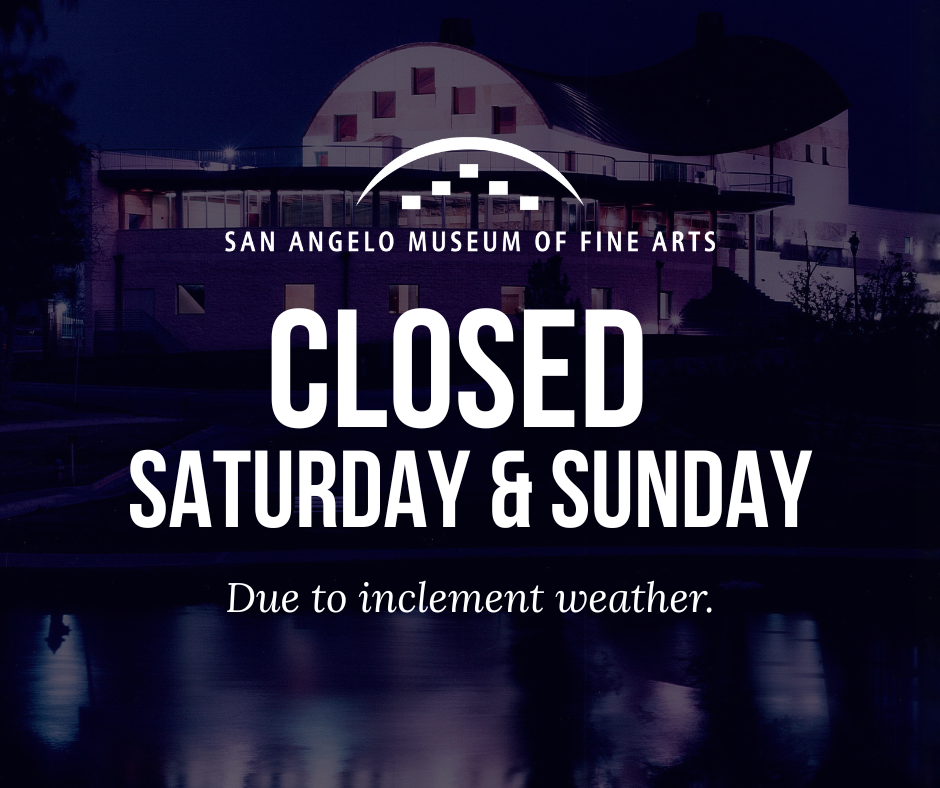 Located near the heart of downtown San Angelo and overlooking the beautiful Concho River, the San Angelo Museum of Fine Arts has three spacious galleries two with dramatic 40-foot ceilings, and a multi-purpose meeting room that can accommodate up to 300 people. There is also a large rooftop sculpture terrace with a beautiful view of the city. We have a gift shop with unique items and works of art created by regional artists and craftspeople. SAMFA also has a research library with a growing collection of early Texas art resources and many hard-to-find exhibit catalogs which are open to the public by appointment, as well as a lively education wing that is equipped with classrooms and ceramic studios.