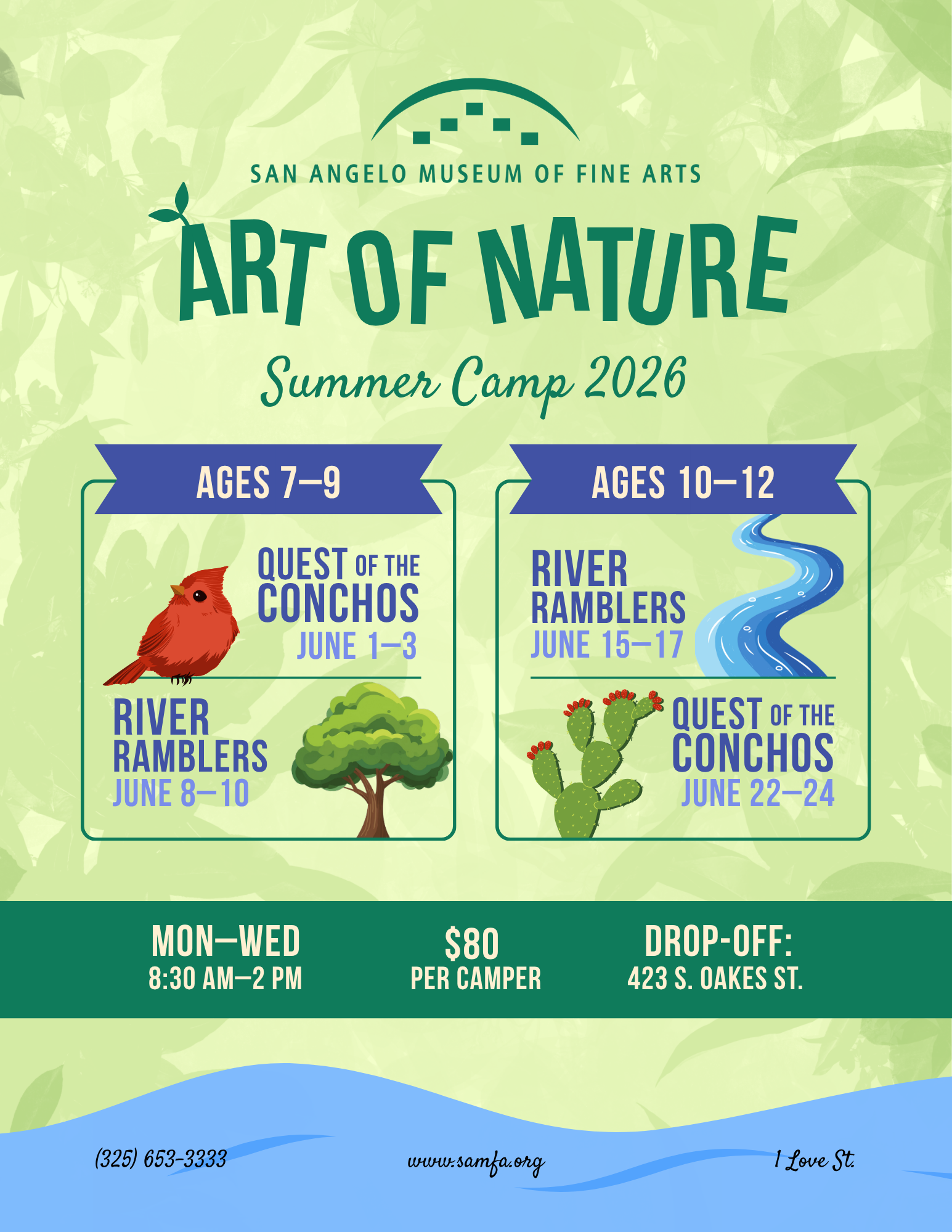 SAMFA’s Summer for Kids returns this June with Art of Nature, a hands-on, nature-inspired art camp for kids ages 7–12. Each camper attends one 3-day session based on their age group and chosen theme.