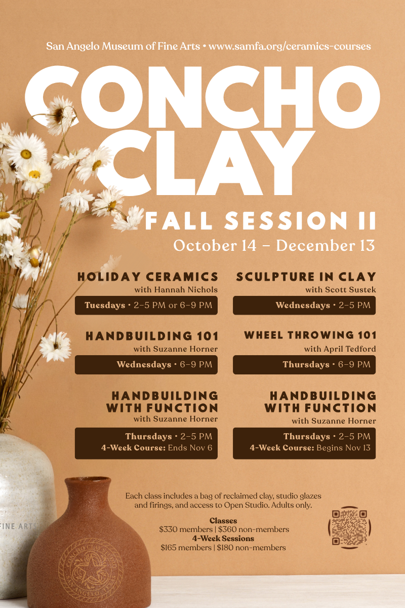Gather your friends or grab your partner for a night of fun at the Concho Clay Studio where Suzanne Horner will instruct handbuilding a chips-and-dip platter! Perfect for a night out or a date night. Beginners encouraged; This workshop is for anybody!
