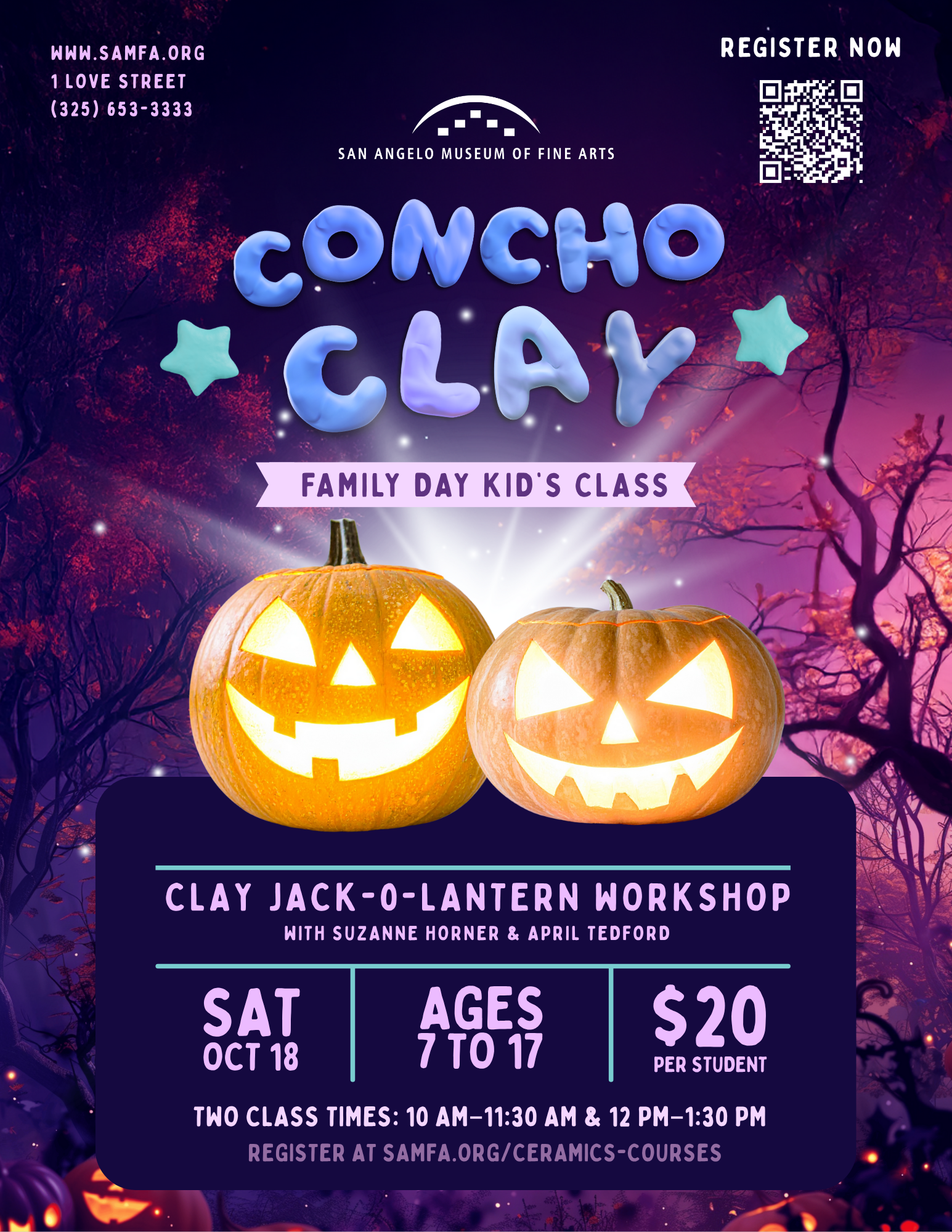 Join teaching artists Suzanne Horner and April Tedford for a fun, hands-on clay workshop designed just for kids and teens! In this Family Day class, students will create their very own clay jack-o’-lanterns, learning basic hand-building techniques while exploring their creativity.