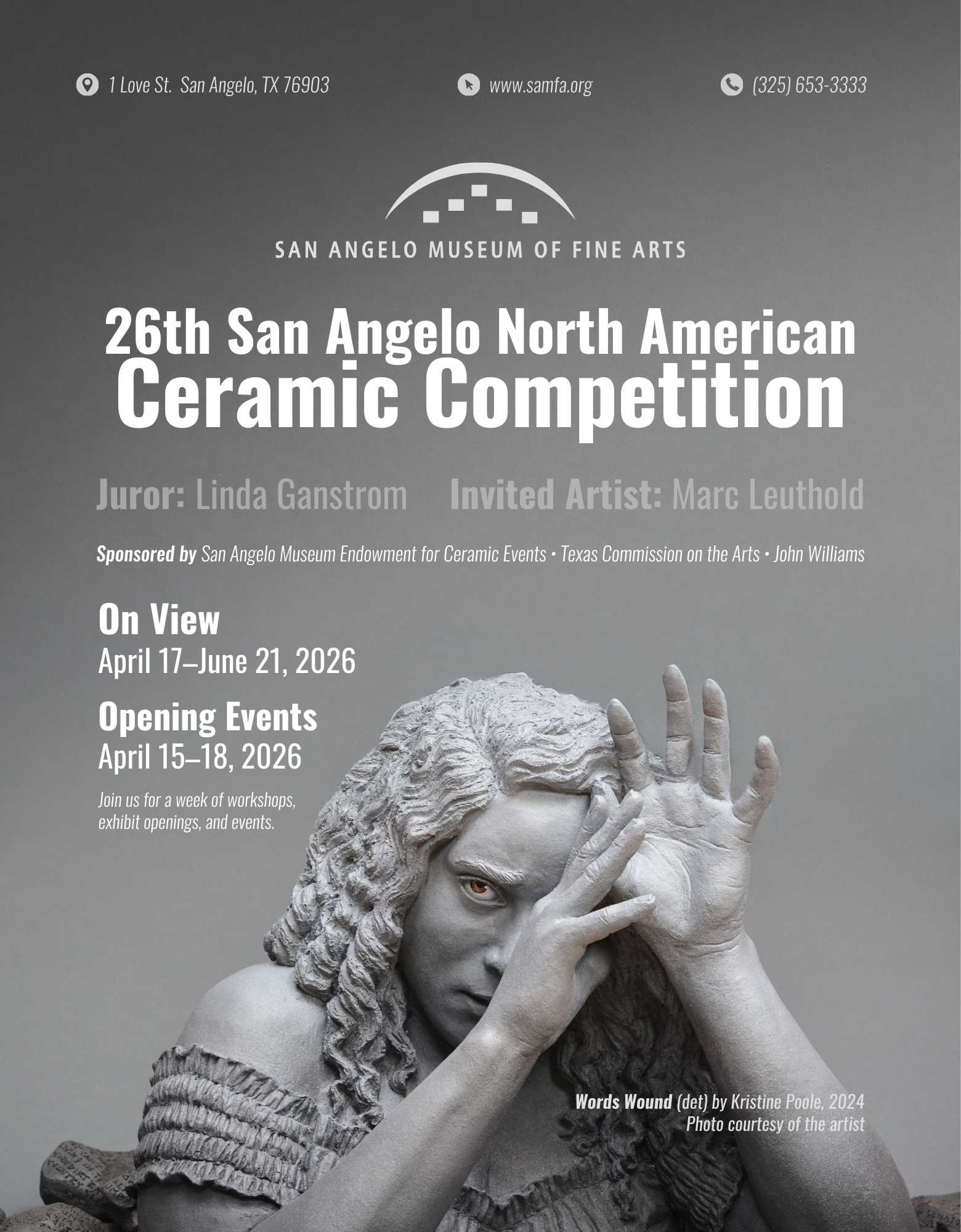 Join us for the opening reception at SAMFA for the 26th San Angelo North American Ceramic Competition.